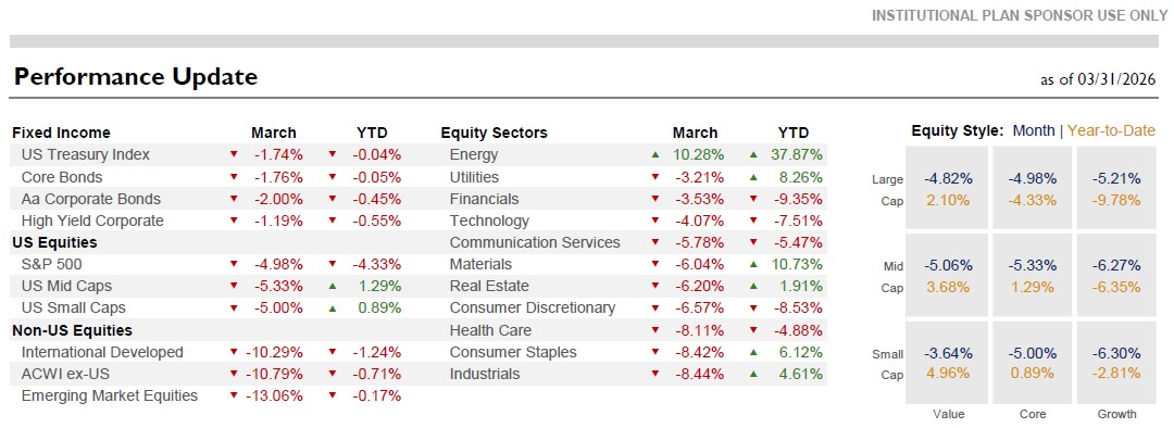 We ended March with considerable resilience in U.S. financial markets. While returns remain below earlier highs and policy signals are somewhat uncertain, markets have remained relatively stable.